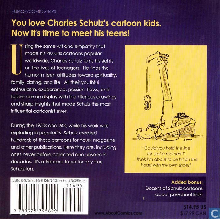 “Using the same wit and empathy that made his Peanuts cartoons popular worldwide. Charles Schulz turns his sights on the lives of teenagers. He finds the humor in teen attitudes toward spirituality, family, dating, and life. All their youthful enthusiasm, exuberence, passion, flaws, and faibles are on display with the hilarious drawings and sharp insights that made Schulz the most influential cartoonist ever.”