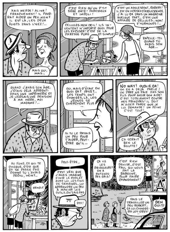 C’est une belle histoire qui nous présente la quintessence de l’adolescence mais je ne l’ai pas autant aimé que l’album de Paul à Québec (dont je n’ai pas encore vu le film) qui offrait beaucoup plus d’émotion et une histoire plus linéaire. Cet album-ci est un peu plus anecdotique. (ci-contre: page 3)