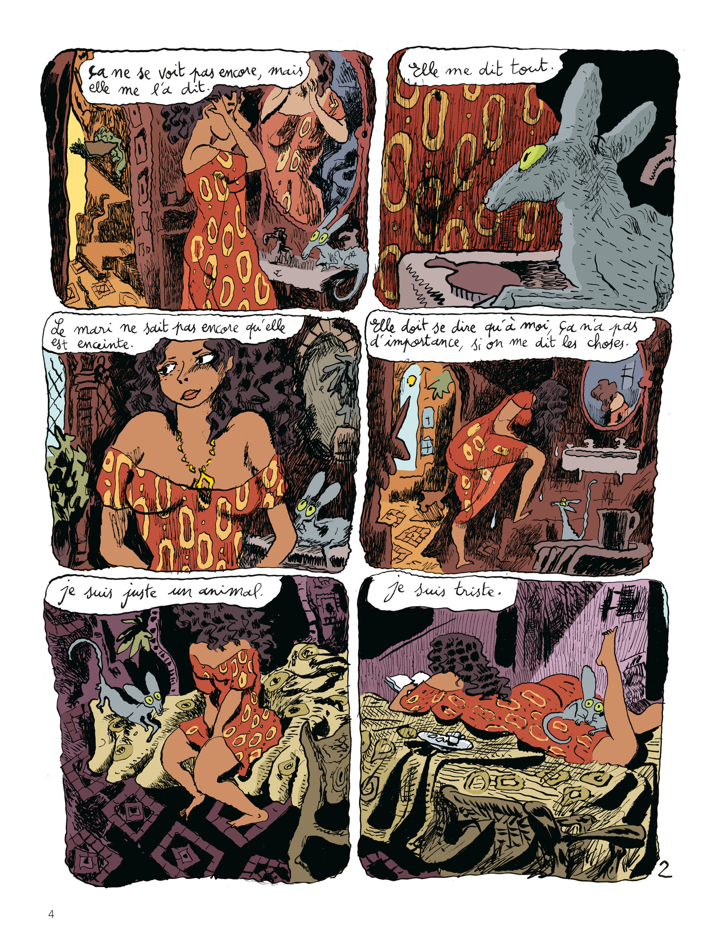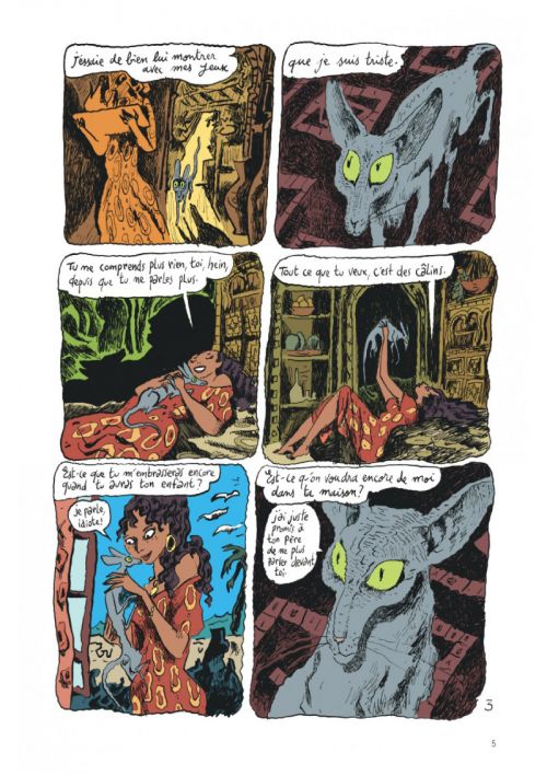 “Le Chat est désespéré : sa maîtresse, Zlabya, est enceinte… Que va-t-il se passer ? S’intéressera-t-elle encore à lui ? Pourra-t-il encore être caressé, pourra-t-il la voir quand il le voudra ? Quelle sera sa place ? Ne devrait-il pas partir et chercher une autre maison ?”