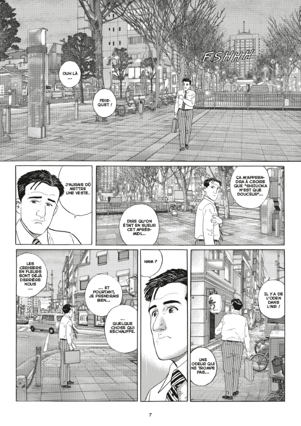Toutefois, si les histoires de Masayuki Kusumi sont intéressantes, c’est surtout le style précis et détaillé de Taniguchi (il paraît qu’il pouvait passer jusqu’à une journée entière sur une seule case! ) qui fait de cet ouvrage une lecture agréable sinon incontournable. Fortement recommandé!