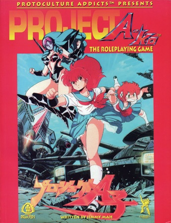 In four years, the same amount of time as the previous era, we released twenty-three issues of the magazine, as well as several other anime-related publications: Anime Shower Special #2-3 (Dec. ’91, Nov. ’92), Mecha Press #1-17 (Jan. ’92 – Apr. 95), Cybersuit Arkadyne #1-3 (Mar. ’92 – Jun. ’92, a comic book by Tim Eldred & Jonathan Jarrard), the Project A-ko RPG (Mar. ‘95) and we also produced three Macross II sourcebooks for Palladium (Mar., Jul. & Dec. ‘94). The gaming aspect was taking more and more of our production time. On top of our anime-related titles, we published dozens of alternate-reality adventure books for R. Talsorian games, Cyberpunk (18 titles), Mekton (2 titles) and Teenagers from Outer-Space (1 title). We also created our own games: Heavy Gear (which spawned a couple of video games and an animation) and Jovian Chronicles. The production team was getting too small to handle both the gaming book line and the anime magazines, so at the end of 1995, we decided to split Ianus Publications in two: Pierre Ouellette kept the gaming part (which became Dream Pod 9) and I kept the anime-related stuff (under the new name of Protoculture).