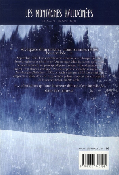 “Septembre 1930, une expédition de scientifiques embarque pour les étendues glacées et désolées de l’Antarctique. Mais les secrets qu’ils vont découvrir révèlent un passé qui dépasse presque l’entendement et un avenir trop atroce à envisager. Par son approche scientifique rigoureuse, “Les Montagnes Hallucinées” (1936), véritable classique d’H P Lovecraft qui emprunte à “l’âge d’or” de l’exploration polaire, a ouvert une ère nouvelle de la science-fiction du 20e siècle.”