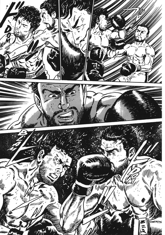 Dans ce manga, Taniguchi dépeint les coulisses de la boxe à travers l’histoire de Reggae, un combattant taciturne (si on ne tient pas compte des onomatopées, il dit à peine dix mots de tout le manga!) et mystérieux qui connait peu de succès jusqu’à ce que le hasard mette sur sa route un promoteur qui voit en lui un nouveau champion. Le récit nous fait découvrir la monté fulgurante du boxeur mais, à part les allusions au passé mystérieux du personnage, il n’offre que peu d’intérêt. Le véritable sujet de Taniguchi est de nous montrer le coulisses sombres du monde de la boxe où les combats se décident comme des transactions louches et maffieuses…