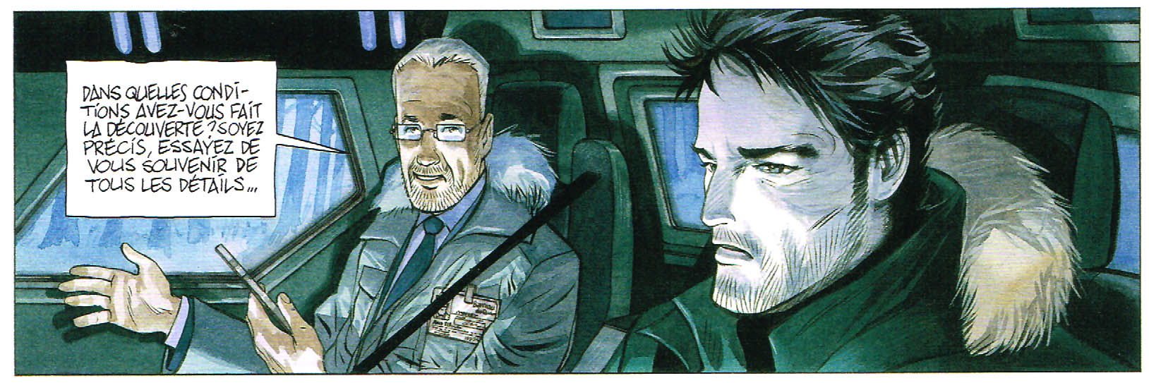 Une expédition scientifique qui découvre un artefact remontant à la nuit des temps et qui semble une impossibilité pourrait constituer les prémices d’une nouvelle de Lovecraft. Et pourtant, Barjavel en a fait une double histoire d’amour au-delà du temps. Dans les grandes lignes, Gauckler respecte assez bien le récit de Barjavel: les deux ouvrages débutent même de façon très similaire, avec une lettre d’amour. Il y a quelques différences mineures: Simon est médecin et Roy est prospecteur; Simon est célibataire alors que Roy a une relation avec Natane, etc. Par contre, on retrouve deux différences importantes: d’une part, la sphère n’est pas en or mais en diamant; d’autre part, Gauckler déplace le cadre du récit de l’Antarctique vers le nord du Québec. Cela fait beaucoup de sens puisque l’Antarctique est un milieu un peu stérile pour développer un récit moderne, riche en intrigues socio-politiques (quoi que le récit de Barjavel se tramait tout de même sur un fond de guerre froide et de conflit nord/sud). L’idée d’y inclure les revendications autochtones est fort intéressante. Finalement, il n’y a pas tant de différences que cela et celles qu’on y retrouve étaient attendues (comme des éléments scientifiques plus à jour) ou nécessaires pour la fluidité du récit dans le cadre d’un medium graphique. Ce sont là, après tout, les prérogatives d’une adaptation… qui est somme toute assez bien réussie.