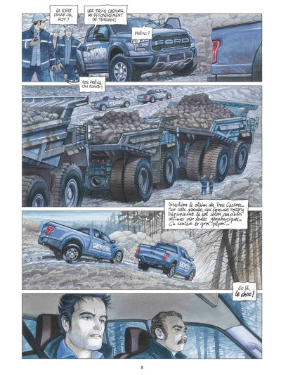 On devine derrière le travail de Gauckler beaucoup de recherches et de repérages, ce qui donne au récit un aspect véridique ou tout au moins vraisemblable: le décor montréalais, la géographie et le patois local, les moeurs autochtones, la rigueur scientifique, etc. Si la région de Eeyou Istchee est surtout connue pour ses gisements d’uranium, on retrouve en effet des mines de diamants dans le nord du Québec (dont la Mine Renard (Stornoway Diamonds) dans les monts Otish près du lac Kaakus Kaanipaahaapisk, 250 km au nord de la communauté crie de Mistissini; d’autre cheminées [dykes] de kimberlite ont également été découvertes au complexe Lynx-Hibou — malheureusement ces projets sont pour l’instant déficitaires). Le nom de la mine “La Grande Ourse” est sans doute inspiré par la rivière La Grande (et possiblement aussi la constellation) mais ne peut manquer d’évoquer pour moi le nom de la série télévisée du même nom ! Le seul élément qui m’embête et que je trouve peu vraisemblable est le fait que les protestations aient dégénéré au point que les rue de Montréal ressemble à la Syrie de Bachar el-Assad ou à Beyrouth pendant la guerre civile ! L’armement nécessaire pour créer ce type de dégâts n’y est simplement pas disponible — mais, bon, la suite du récit offrira peut-être des explications satisfaisantes…