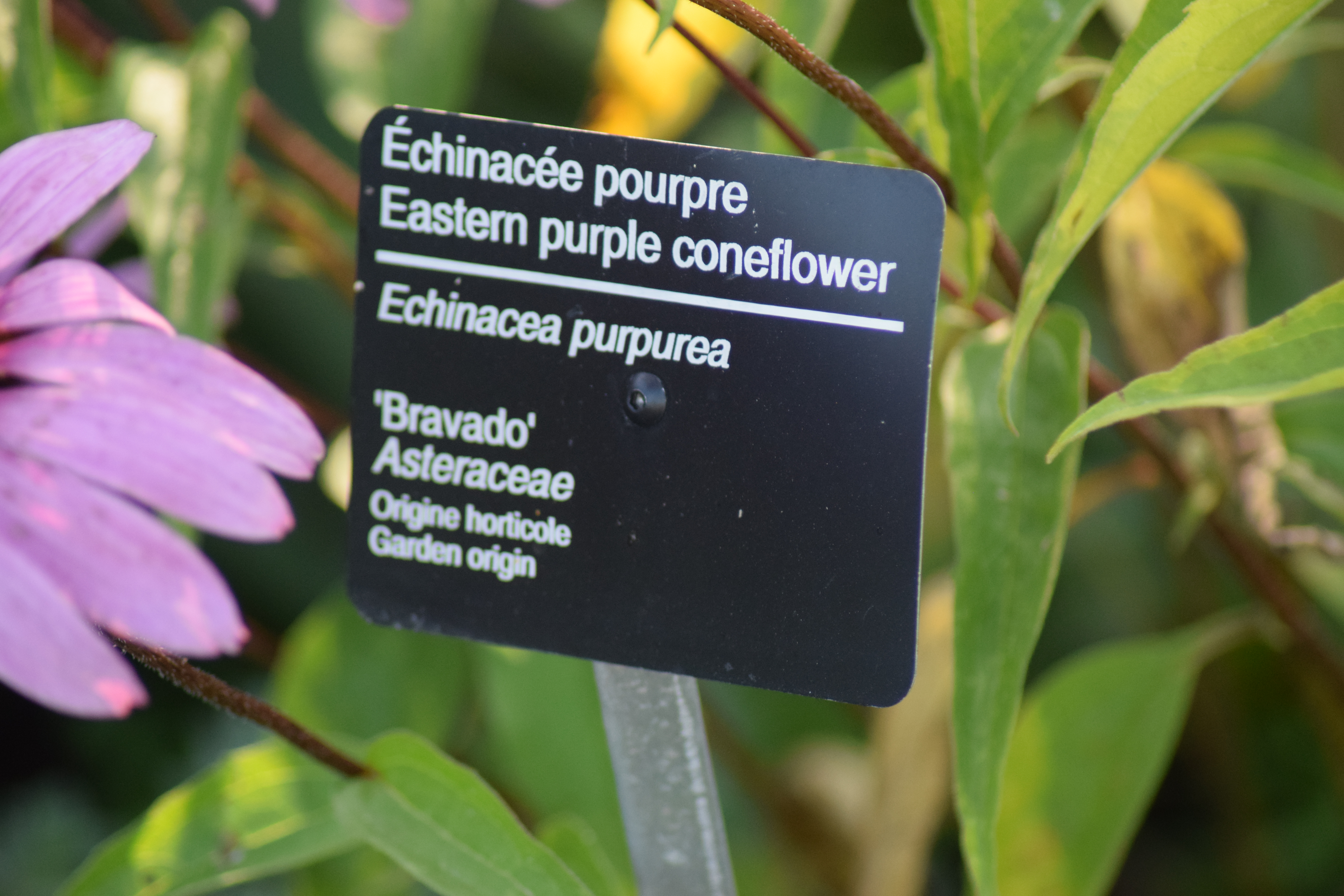 L’échinacée pourpre (ou rudbeckie pourpre) est une plante à fleurs de la classe des Dicotylédones vraies, de l’ordre des Asterales, de la famille des Asteraceae et du genre Echinacea. L’espèce Echinacea purpurea, ici (selon la fiche signalétique ci-contre) le cultivar “Bravado”, est une vivace dont les qualités médicinales étaient déjà connu par les Amérindiens qui se servaient entre autre de la plante broyée pour guérir les plaies infectées et de la racine contre le maux de tête ou d’estomac et les infections respiratoires (toux, rhumes, rhinovirus). Des études récentes ont démontré un effet stimulant sur les défenses immunitaires. (Source: Wikipedia) [ Translate ]