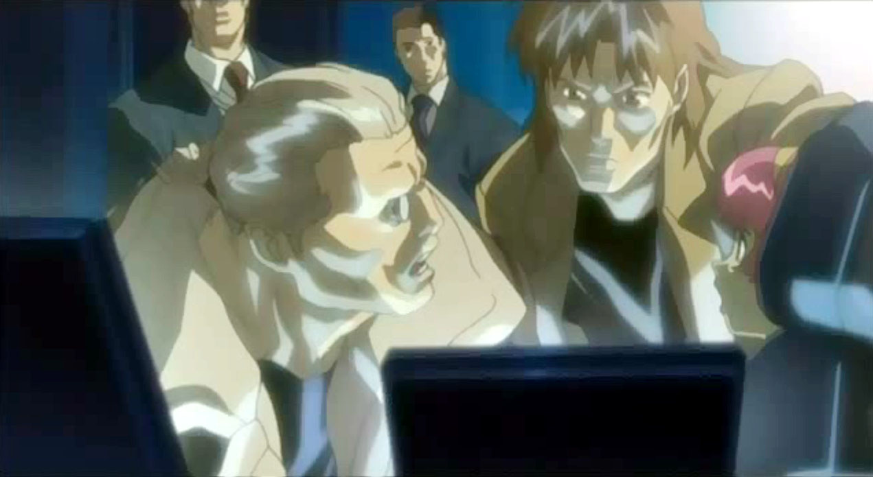 GHSill02RSo what do they mean by “Stand Alone Complex”? It could mean that the series is mostly made of stand alone episodes (self contained stories), with a few more complex episodes (the “Laughing Man” story arc). However, episode 6 also provides another explanation: it refers to the fact that Laughing Man’s imitators are independent copycats, created without an original. To me it seems that Production I.G.’s writers want to make the point that “It’s extremely difficult and almost impossible today to stand alone in this complex society of computers and networks.” Each episode throws enormous amounts of technical information and detail about computers, science and politics for the viewer to digest. At first, for an average nincompoop like myself, the contents of this show can be too much, but with a bit of patience it’s certainly educational. I think, in a way, it’s charming to see so much information on technology. Compared to ordinary anime shows, the amount of dialogue and information is quite huge.