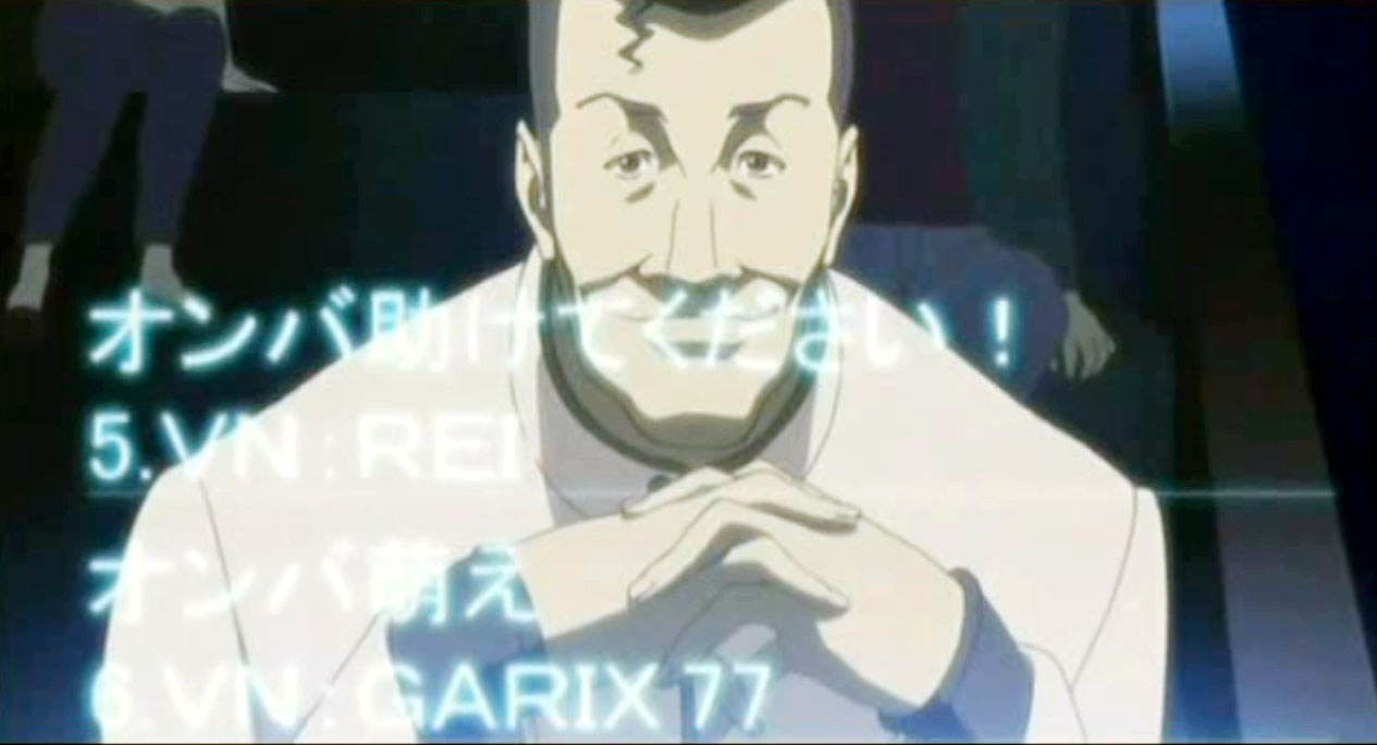 SAC09-01Inside the Net, many people who are very interested in the identity of the Laughing Man, discuss the topic and many people seem to have lots of inferences. The host of the chat room is called “Omba” and the discussion is beginning to really heat up! Meanwhile, Major Kusanagi is one of the members in the chat room and she notices that there is someone who’s watching it all. She also feels something is wrong and with Omba’s voice she ends up somewhere mysterious, but is forced to return! Is she getting close to solving the case?