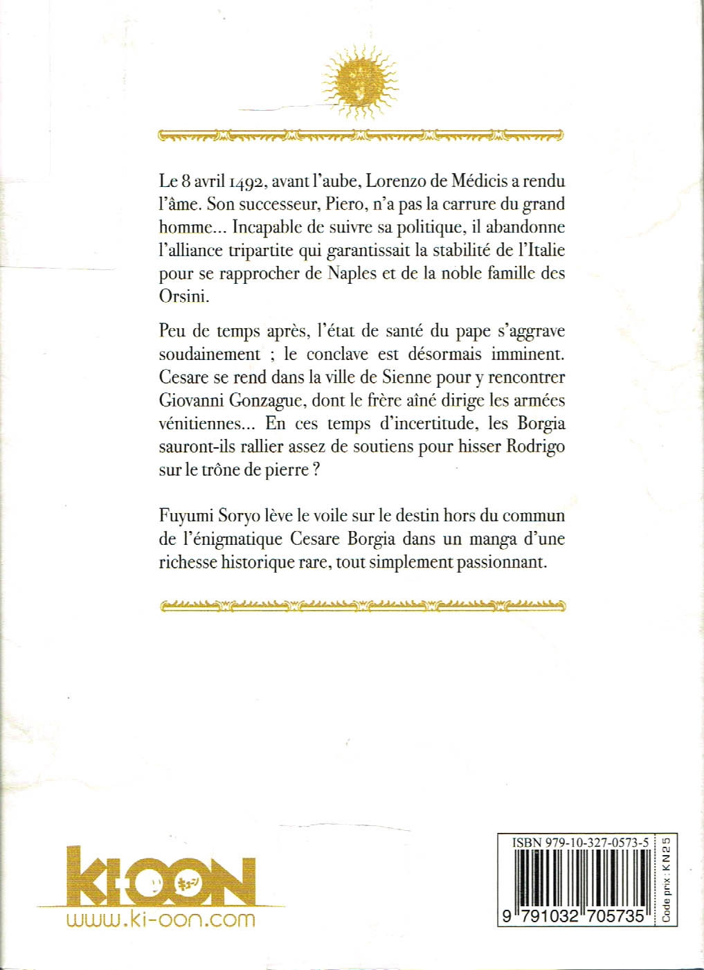 Fuyumi Soryo lève le voile sur le destin hors du commun de l’énigmatique Cesare Borgia dans un manga d’une richesse historique rare, tout simplement passionnant.”