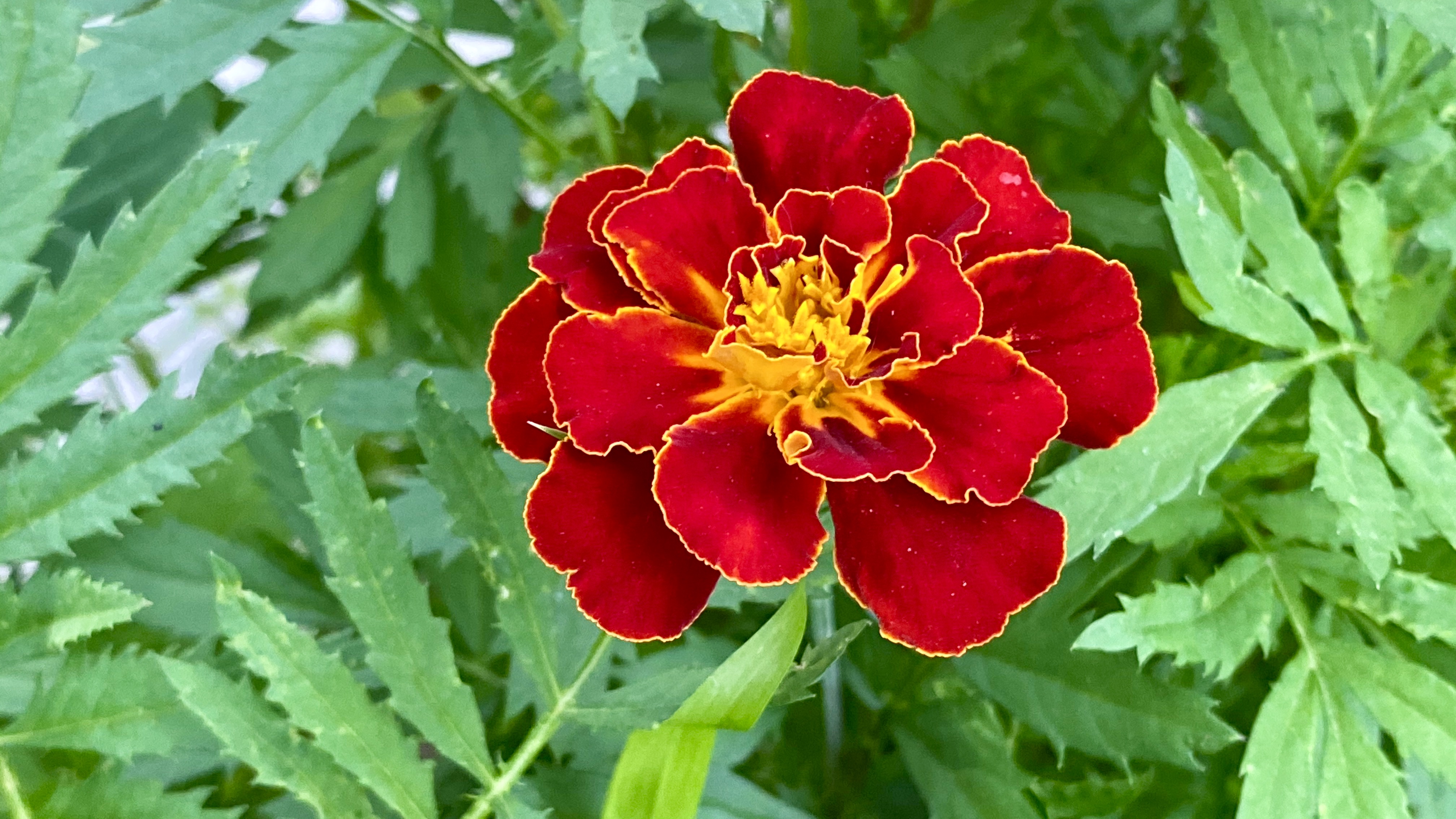 L’Oeillet d’Inde (“French marigold” en anglais) est une espèce de plante herbacée à fleurs de la classe des Magnoliopsida, de l’ordre des Asterales, de la famille des Asteraceae, et du genre Tagetes. En plus d’être décorative et d’attirer les papillons, elle est beaucoup utilisée en culture biologique comme plante d’accompagnement à cause de ses effets répulsifs contre certains insectes (pucerons, fourmis, vers, et mouches blanches) et plantes envahissantes (liseron et chiendent). La fleur a de nombreux usages: non seulement est-elle comestible mais séchée elle peut servir d’épice (le safran Imérétien ou safran du pauvre), de colorant et aurait même des propriétés médicinales. Ce cultivar serait probablement la “Cinnabar”. [ Translate ]
