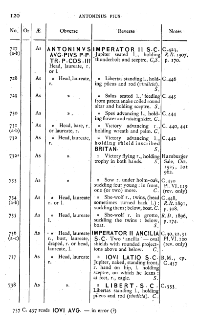 Sources: Numismatics, CoinArchives, acsearch, vcoins, coinproject (bare head), coinproject (as), Ancient Roman Coins, Wildwinds.