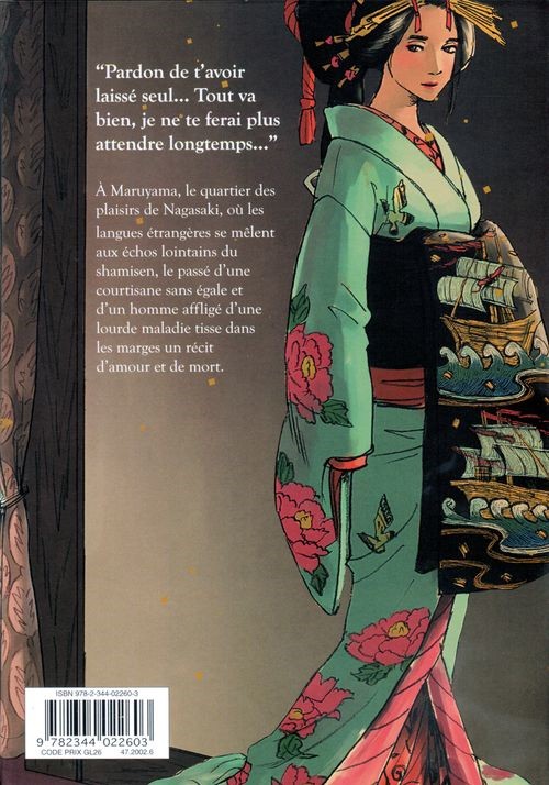 “Mémoires d’une geisha — Kicho, la plus belle courtisane de Nagasaki, séduit tous les hommes sans exception. Cependant, du vieux marchand ivrogne au médecin étranger, elle continue à accepter tous les clients, même les plus méprisables. Quel secret cache-t-elle derrière sa douce mélancolie ? Le jeune garçon qui nourrit une haine farouche envers elle détient peut-être les clefs du mystère…