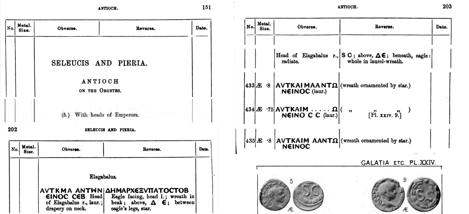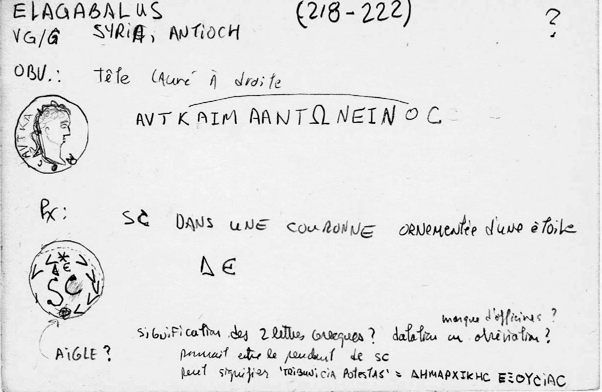 Sources: (Elagabalus [FR/EN], sénatus-consulte); BMCG 20: 434 (p. 203 + pl. XXIV 9); FAC (Elagabalus, S CGreek Imperials), ERIC (Elagabalus); WildWinds (text, image), WildWinds (text, image), Numista, CoinProject, CoinArchives, acsearch, Provincial Romans. Voir aussi ma fiche.