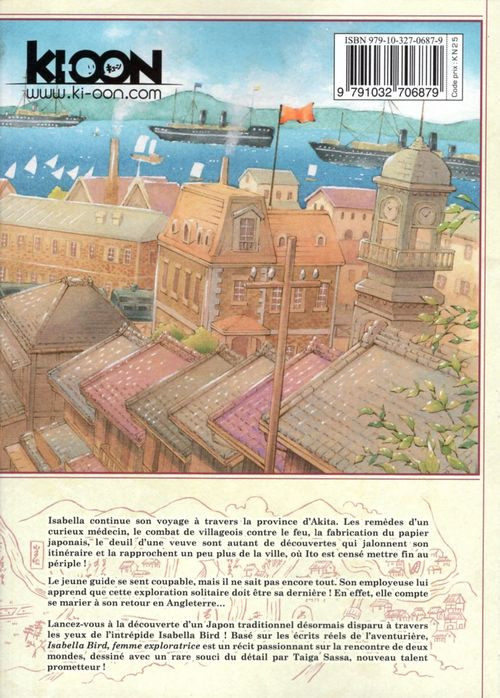 Isabella Bird, femme exploratrice T07 par Taiga SASSA. Paris: Ki-oon (Coll. Kizuna), décembre 2020. 216 pg (206 pl.), , 13 x 18 cm, 7,90 € / $14.95 Can., ISBN 979-10-327-0687-9. Pour lectorat adolescent (12+). ![]()