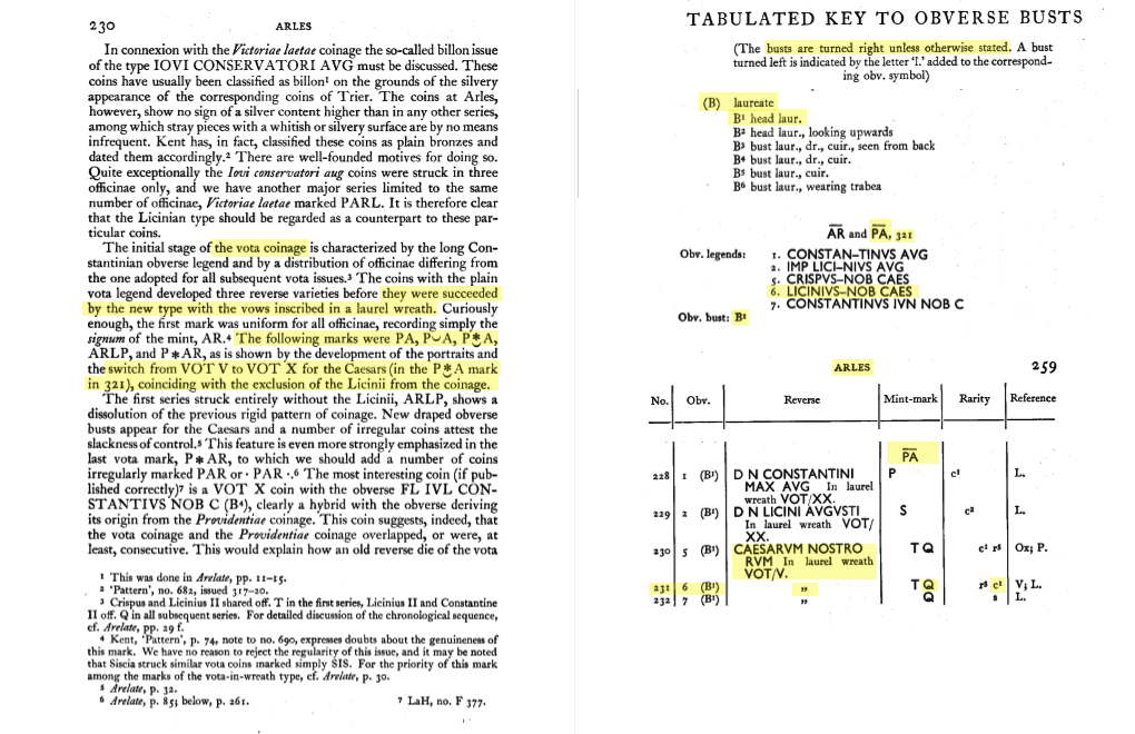 Sources: Wikipedia (Constantinus [FR/EN]), Google, FAC (Constantinus), ERIC (Constantinus); RIC v. 7: 60; Catawiki, CGBFR, NBD, Numista, WildWinds (text 1, image 1; text 2, image 2). Voir aussi ma fiche.