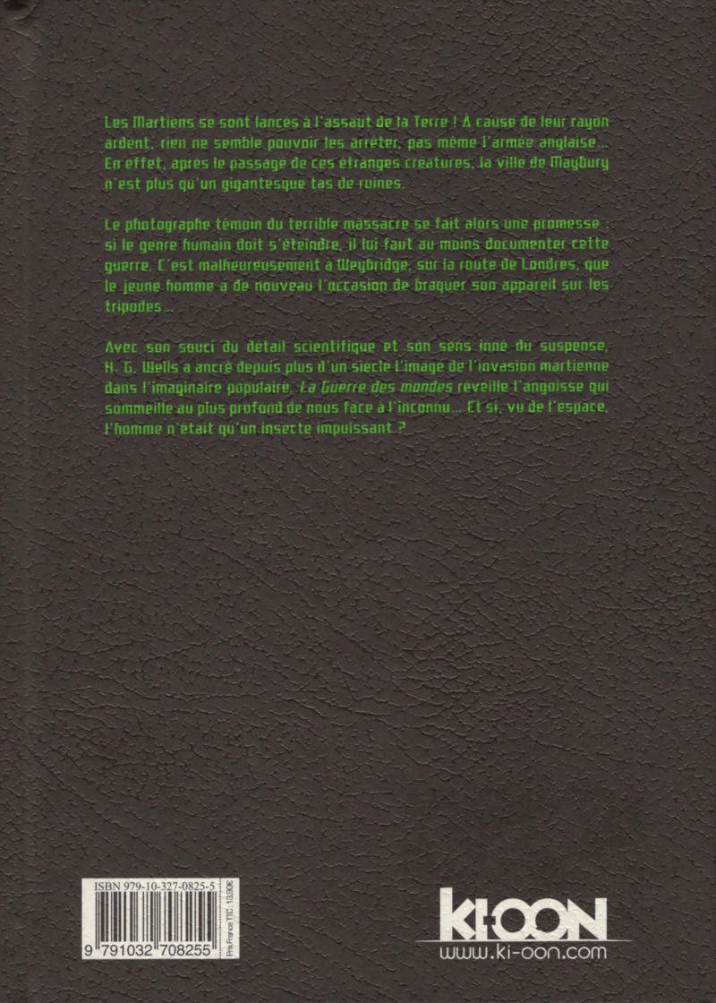 Le photographe témoin du terrible massacre se fait alors une promesse : si le genre humain doit s’éteindre, il lui faut au moins documenter cette guerre. C’est malheureusement à Weybridge, sur la route de Londres, que le jeune homme a de nouveau l’occasion de braquer son appareil sur les tripodes…Avec son souci du détail scientifique et son sens inné du suspense, H. G. Wells a ancré depuis plus d’un siècle l’image de l’invasion martienne dans l’imaginaire populaire. La Guerre des mondes réveille l’angoisse qui sommeille au plus profond de nous face à l’inconnu… Et si, vu de l’espace, l’homme n’était qu’un insecte impuissant ?”