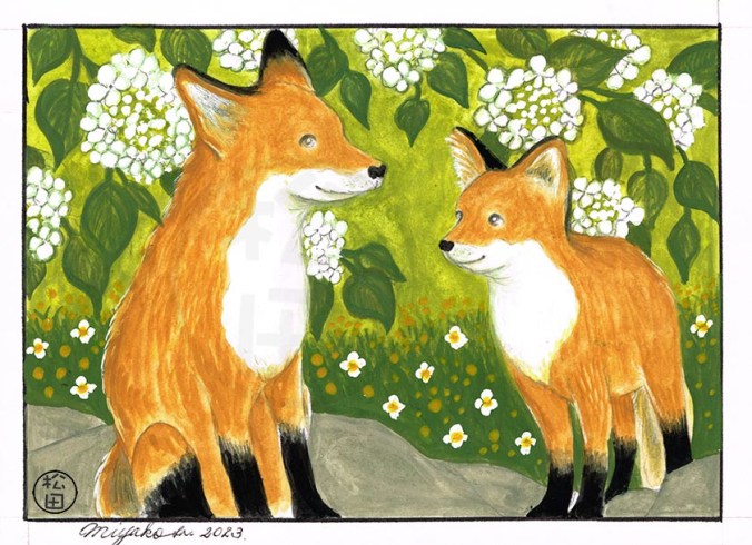 Foxes with Hydrangea Anomalia