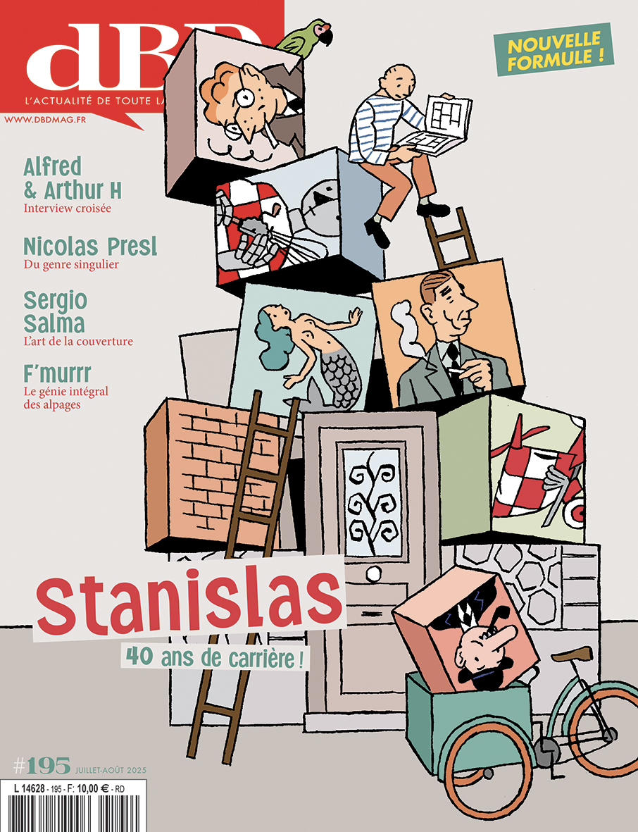 À la une de ce numéro on retrouve une entrevue avec Stanislas sur son nouvel album La Fin du monde, chez L’Association. Les entrevues se poursuivent avec Arthur H & Alfred (sur La solidité du rêve, chez Casterman), Dominique Ziegler, Baladi et Denis Robert (sur leurs livres Chacal Hebdo [chez Hoochie Coochie] et Mohicans, connaissez-vous Charlie? [chez Julliard et Florent Massot en poche], Sylvain Repos (sur Yojimbot T.4: Flammes de carbone, chez Dargaud), et Nicolas Presl (sur La ville, chez Atrabile).
