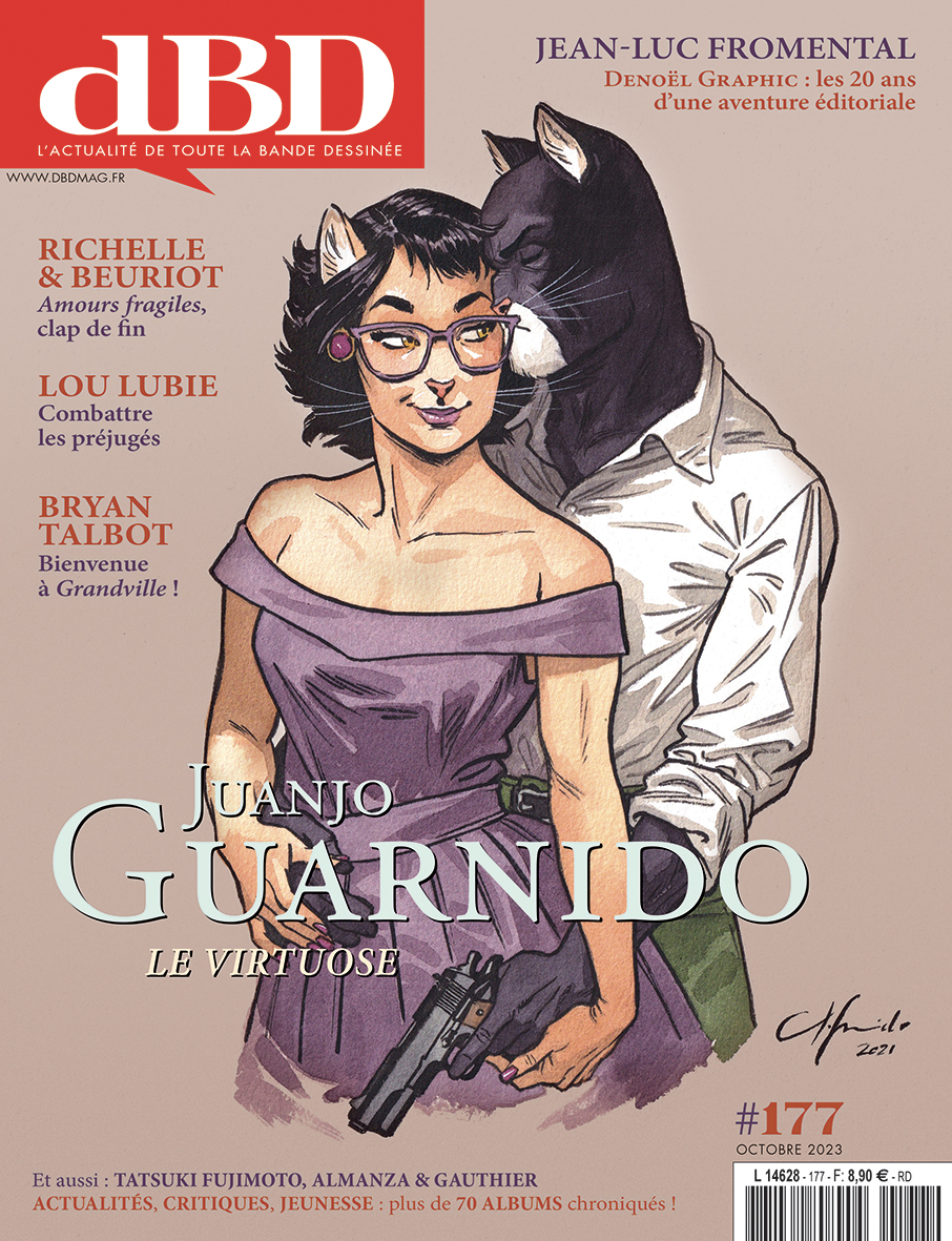 À la une de ce numéro on retrouve une entrevue avec Posy Simmonds (sur l’exposition qui lui est consacrée à la Bibliothèque Publique d’Information, Place Georges-Pompidou, et sur True Love: Une romance graphique (chez Denoël Graphic). Les entrevues se poursuivent avec la chanteuse La Grande Sophie, Vincent Henry (sur les vingt ans de La Boîte à Bulles), Fabien Toulmé (sur Inoubliables, chez Dupuis), Audrey Alwett & Chrisstopher Arleston (sur Le grimoire d’Élfie t.4: Le trésor de la tricomancienne, chez Drakoo), Sergio Garcia Sanchez (sur Le ciel dans la tête, chez Denoël Graphic, et Chassé-croisé au Val Doré, chez Dupuis), ainsi qu’avec William & Christophe Cazenove (sur Les sisters t.18: Tu veux ma photo ?, chez Bamboo).