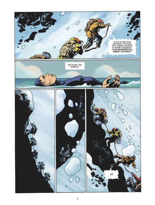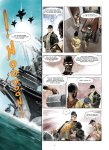 Ce numéro nous présente donc les récits suivants: “L’Océan qui chante” (Fabrizio Dori, 9 pgs, couleur), “Europa” (Fabien Grolleau & Abdel de Bruxelles, 11 pgs, coul.), “Au-delà de l’océan” (Valentin Ramon, 7 pgs, coul.), “Narcose” (Zéphir, 9 pgs, coul.), “La plage” (Simeon van den Ende & Pim Bos, 9 pgs, coul.), “Achane” (Edo Brenes, 9 pgs, coul.), “Pour l’humanité” (Joseph Falzon, 9 pgs, coul.), “Les lueurs de la nuit, l’abîme et le naufragé des étoiles” (Homero Rios & Leno Carvalho, 7 pgs, N&B), “Le plongeon” (Jean-Luc Cornette, 5 pgs, coul.), “La tribu de l’eau” (Marco Taddei & Samuele Canestrari, 7 pgs, duotone), “Thurs. 7:13 PM” (Thomas Bidault, 5 pgs, coul.), “Mocha – Pêche interdite” (Marc Caro & Cecyle Bay, 9 pgs, coul.), “Limon” (Juliette Hayer, 9 pgs, coul.), “Megasillon” (Arthur de Pins, 9 pgs, coul.), “Enterré” (Ryan Barry, 9 pgs, N&B), “Soupe primordiale” (Laurent Siefer, 11 pgs, coul.), “Le pêcheur ds abysses” (Miel Vandepitte, 7 pgs, coul.), “Abyssal transfert” (Richard Guérineau, 9 pgs, coul.), “Chasse sous-marine” (Gloria Ciapponi & Luca Conca, 7 pgs, coul.), “Deux frères” (Gamberoussette, 5 pgs, coul.), “Les astro-nautiques” (Alexandre Ristorcelli, 8 pgs, coul.), “Blind Taste” (Marc Caro, 3 pgs, N&B), “Maelström” (Brouette Hurlante, 5 pgs, coul.), “Intrication au naturel” (Grégory Panaccione & Giorgio Gualandris, 7 pgs, N&B), “Océanisation” (Étienne Appert, 11 pgs, coul.), “La grande marée” (Camille Moulin-Dupré, 9 pgs, N&B), “TOL” (Damien Cuvillier, 5 pgs, coul.), et “Caralisator” (Michaël Sanlaville, 7 pgs, coul.).