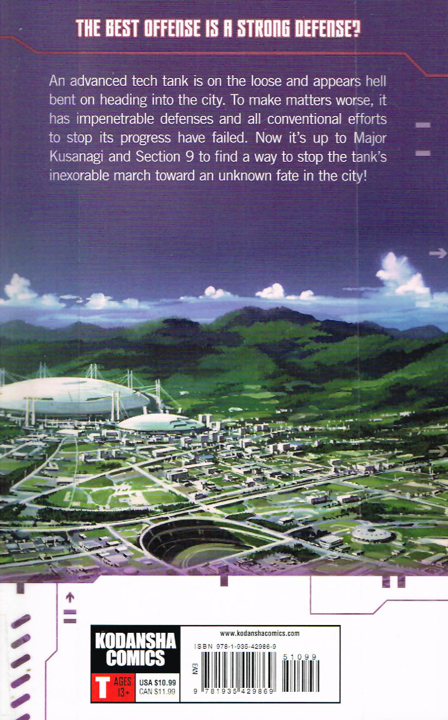 “Volume 2: The best offense is a strong defence? An advanced tech tank is on the loose and appears hell bent on heading into the city. To make matters worse, it has impenetrable defenses and all conventional efforts to stop its progress have failed. Now it’s up to Major Kusanagi and Section 9 to find a way to stop the tank’s inexorable march toward an unknown fate in the city!”