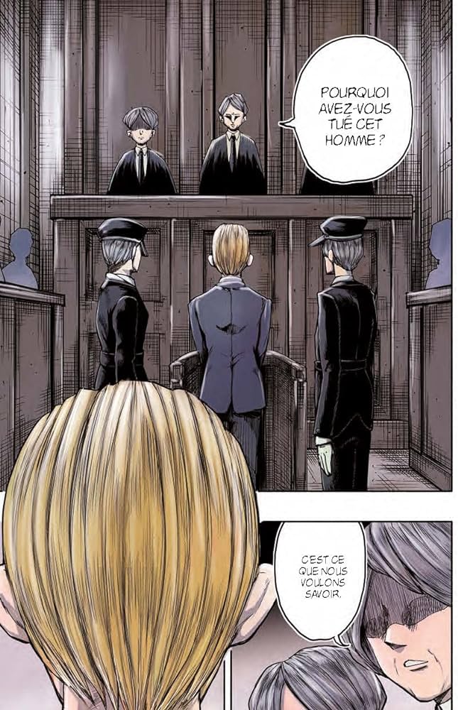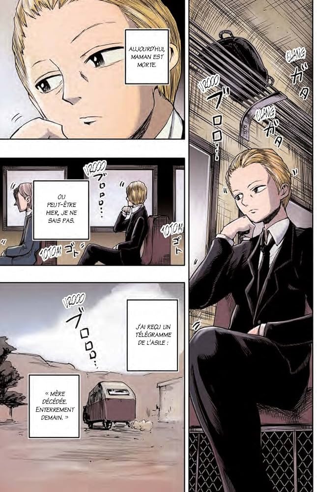 L’Étranger (異邦人 / Kotokunibito) est un manga seinen par Ryota Kurumado qui adapte sous forme graphique le fameux roman absurde d’Albert Camus — qui a déjà eut une adaptation similaire par Jacques Ferrandez publiée chez Gallimard. Né en 1989, Kurumado est un jeune mangaka qui s’était déjà fait connaître en 2020 avec l’adaptation d’une autre oeuvre de Camus, La Peste (ペスト, 4 volumes aussi publiés chez Michel Lafon). Avant cela, il n’avait publié que deux récits: Freude (フロイデ, sérialisé dans Monthly Morning Two en 2015 et compilé chez Kodansha en un volume) et My Wife is a BL Manga Artist (嫁はBL漫画家, sérialisé dans B Bunch en 2019 et compilé chez Shinchosha en deux volumes).