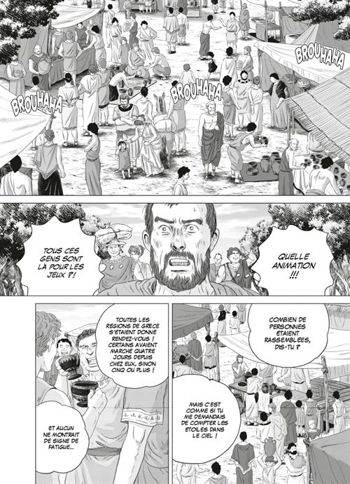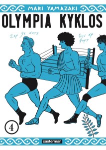 OlympiaKyklos-5-p002Olympia kyklos (オリンピア・キュクロス / lit. “Cercles Olympique”) est un manga seinen par Mari Yamazaki qui est sérialisé au Japon dans le magazine bimensuel Grand Jump depuis mars 2018 et a été jusqu’à maintenant compilé en sept volumes chez Shueisha. Il a été traduit en français chez Casterman (six volumes de disponibles). C’est une comédie du style de Thermae Romae (voir aussi mon commentaire sur cette série) mais qui se situe dans l’antiquité grecque cette fois et traite de sujets autour du thème des jeux olympiques. Le manga a sans aucun doute été créé en anticipation des jeux olympiques de Tokyo de 2020 (mais qui furent reportés à l’année suivante à cause de la pandémie de Covid-19). J’ai déjà commenté le trois premiers volumes ainsi que le quatrième.