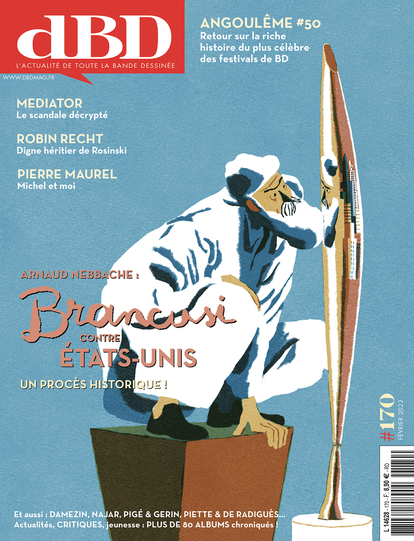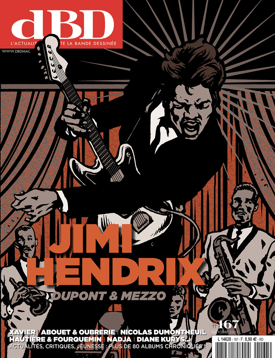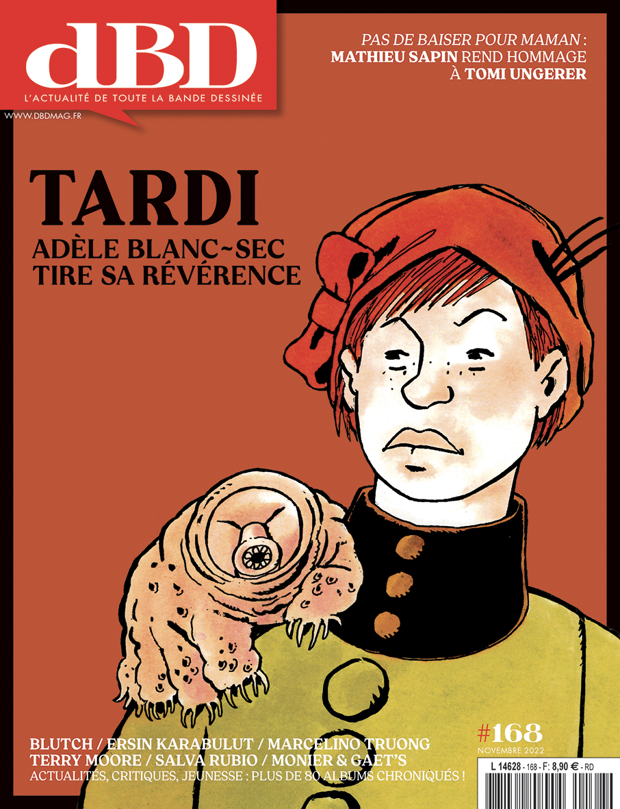 Et finalement quelques rubriques : Le dessin du mois (l’affiche de Aude Picault pour le festival de BD de Delémont), L’Art de la couverture (Ohio: La belle rivière par Fred Duval, Brada, Jean-Paul Fernandez et Emem chez Delcourt), Avant-Première (7 pages de Les cheveux d’Édith par Fabienne Blanchut, Catherine Locandro et Dawid chez Dargaud), Talent à Découvrir (Corentin Garrido, pour Le Bonheur, chez Le Monte-En-L’Air) et Humeur.